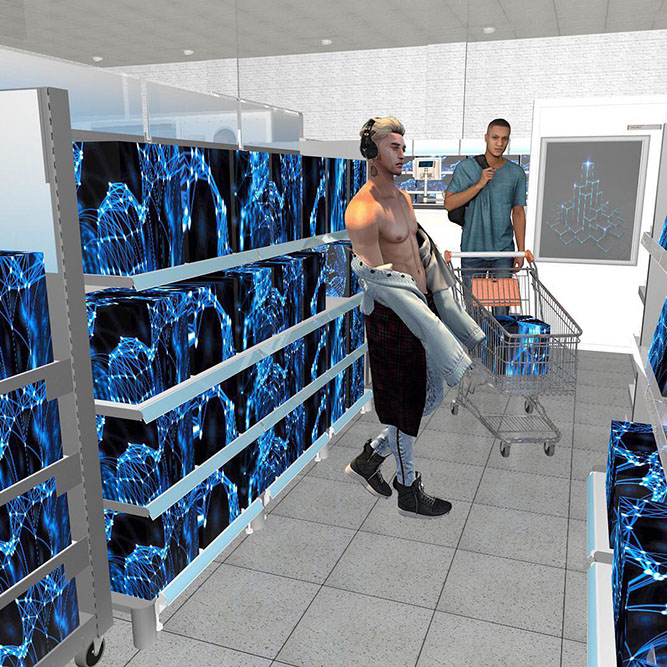 • a view in a store with crypto items that was aimed to illustrate the Universal Trading Platform.