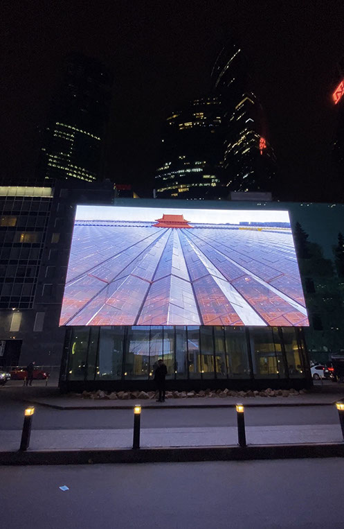 Promduh video at New Tretyakov Gallery and on Moscow Public Art Fund screen in Moscow City.