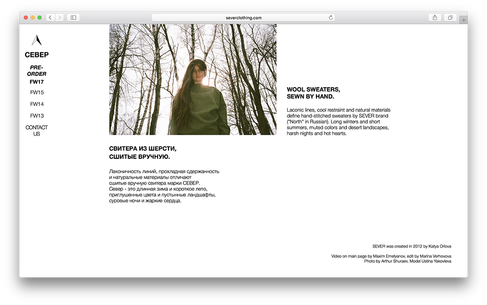 BRANDING Sever is a clothing brand from Russia. I made a logo and website for it.
